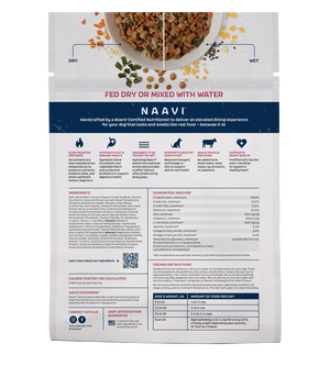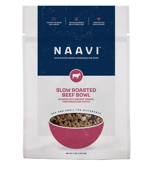 NAAVI’s slow roasted meals represent the newest innovation in alternative feeding for dogs. Tender slow roasted meats, air-dried fruits, vegetables and air-puffed probiotic crisps are mixed to create a dining experience with a variety of textures, flavors, and aromas that dogs are guaranteed to love.