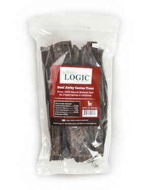Nature's Logic Canine Beef Jerky Treat is dried beef jerky made from USA (Midwest) sourced beef that has been graded USDA Prime. These are great for recreational chewing, dental hygiene, and a general meaty treat!