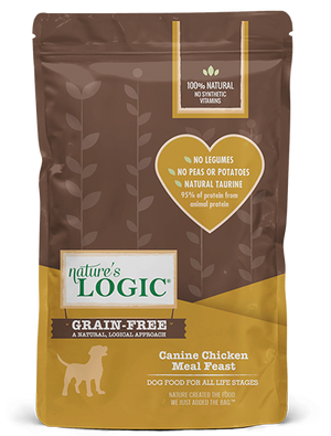 Nature’s Logic Grain-Free Canine Chicken Meal Feast is a savory blend of chicken meal (the first ingredient) from USA-raised chicken combined with our exclusive concentrate of dried vegetables, dried fruits probiotics, and digestive enzymes. It’s ideal for dogs of all ages, sizes, and breeds.