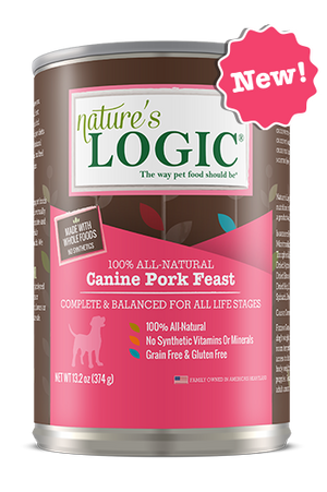 Nature’s Logic® Canine Pork Feast provides complete and balanced nutrition for all life stages and is comparable in nutrition adequacy to a product which has been substantiated using AAFCO feeding tests.