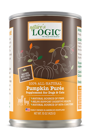Use Nature’s Logic® Pumpkin Purée on top of food, or as a treat on its own. Loaded with fiber, Pumpkin Purée can help your furry friend overcome diarrhea and constipation. The high moisture content in our 100% all-natural Pumpkin Purée can also help keep your pet hydrated.