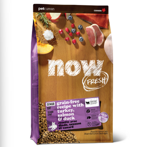 Now! Fresh™ Senior cat food recipe is made with 100% fresh turkey, salmon, duck and 100% fresh Omega 3 & 6 oils from coconuts and canola. Now! Fresh™ also features zero grains, gluten, wheat, beef, corn or soy. Zero rendered meats, by-products or artificial preservatives.