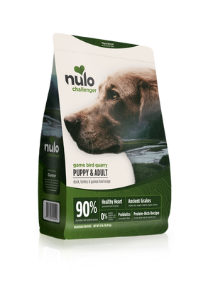 Nulo Challenger™ Gamebird Quarry Puppy & Adult Duck, Turkey, & Guinea Fowl Recipe Dog Food is formulated to meet the AAFCO Dog Food Nutrient Profiles for all life stages, except for growth of large size dogs (70 lb. or more as an adult).