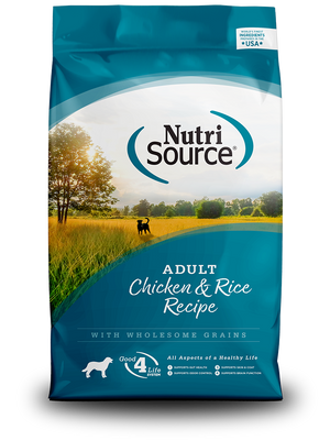 - As a member of our grain inclusive series of dog foods, NutriSource® Adult Chicken & Rice Recipe is formulated to meet AAFCO guidelines for all life stages.