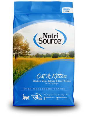 NutriSource® Cat & Kitten Chicken Meal, Salmon, & Liver Recipe is formulated to meet the nutritional levels established by the Association of American Feed Control Officials (AAFCO) Cat Food Nutrient Profiles for all life stages.