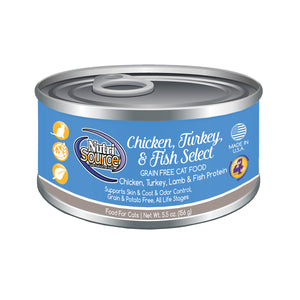 NutriSource® Chicken, Turkey & Fish Select Cat Food has been formulated to meet the nutritional levels established by the AAFCO Cat Food Nutrient Profiles for all life stages.
