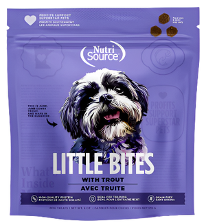 - NutriSource Trout Grain Free Little Bites are made with high-quality protein.