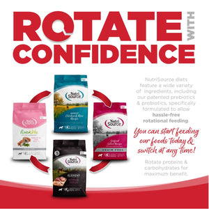 - NutriSource® grain inclusive formulas deliver compact nutrition and include prebiotics and probiotics to help support a healthy gut.