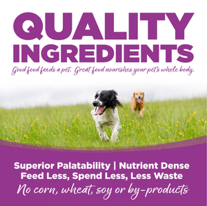 Amount of food consumed will vary based on activity level, age, breed, and environment. Standard 8 oz. (250 cc) measuring cup holds approximately 3.6 oz (102 g) of NutriSource® Large Breed Puppy Recipe. At 5-7 months and again at about 12 months, your puppy will automatically reduce the amount consumed. This is due to a natural reduction in growth rate and the reduced need for calories. Consult your veterinarian if you believe your dog is too thin or overweight. Remember it is important to have clean, fresh water available for your dog at all times.
