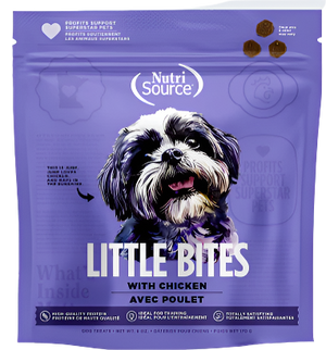 - NutriSource Chicken Little Bites are made with high-quality protein.