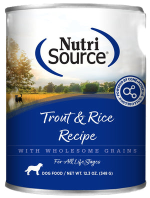 NutriSource® Trout & Rice Dog Food has been formulated to meet the nutritional levels established by the AAFCO Dog Food Nutrient Profiles for all life stages including growth of large size dogs (70 lb. or more as an adult).