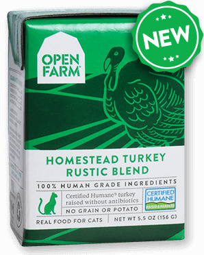 Open Farm Homestead Turkey Rustic Blend cat food is formulated to meet the nutritional levels established by the AAFCO Cat Food Nutrient Profiles for maintenance.