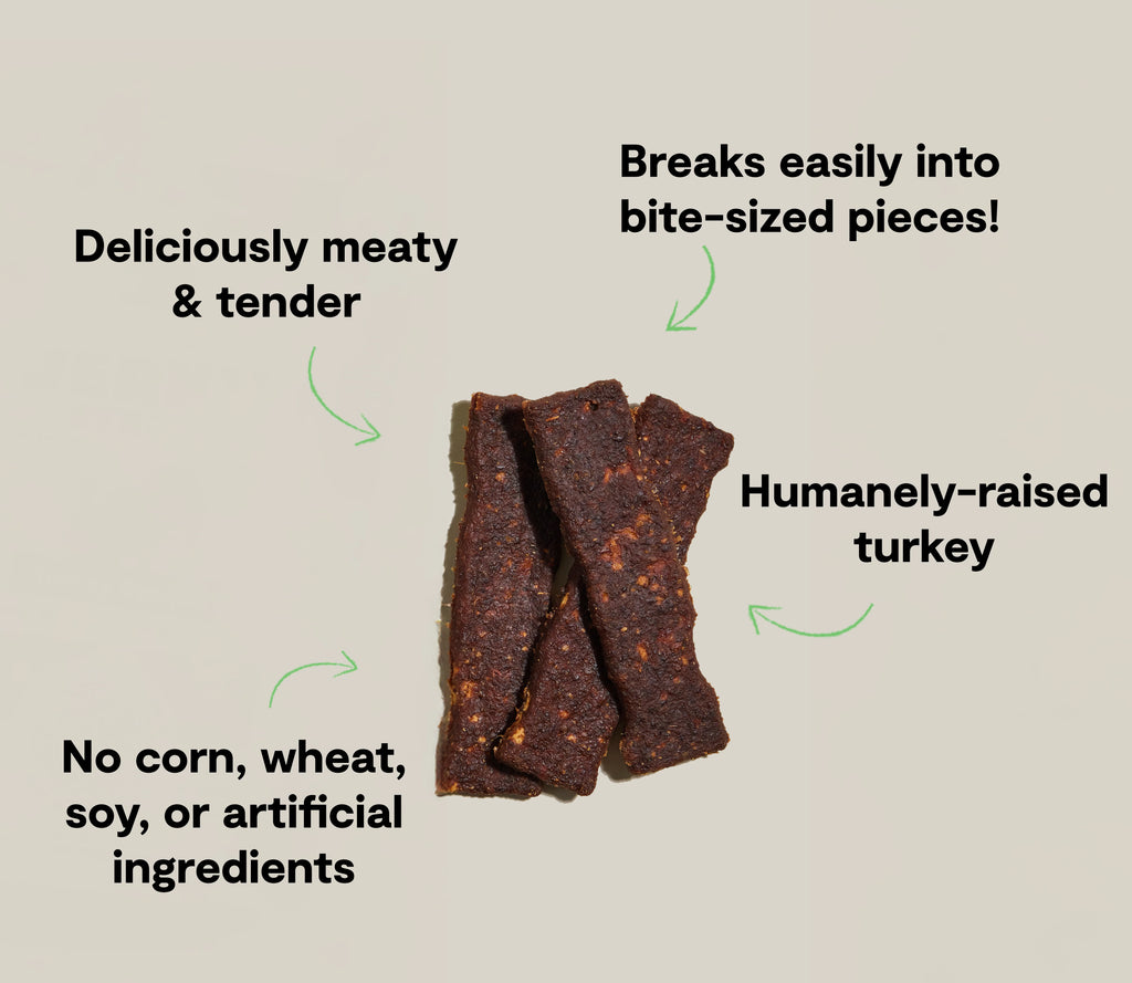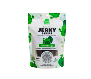 Our Turkey Jerky Strips feature humanely-raised turkey to deliver an incredible taste your dog will crave! As with all Open Farm products, our ethically sourced ingredients are 100% traceable. Our jerky strips are crafted in a way that respects animal welfare and our planet. Approximately 7-8 strips per bag.