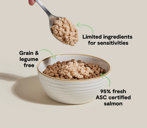 Crafted with 95% fresh Icelandic salmon, this silky mousse is a delicious and nutritious way to add instant texture and variety to your cat's bowl. Grain- and legume-free and made in a human-grade facility with 100% human grade ingredients.