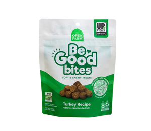 These bite-sized treats are made with humanely raised turkey as the first ingredient, combined with high-quality non-GMO fruits & grains. With a soft and chewy texture and 30% upcycled ingredients, Be Good Bites are great for your pup and the planet too! Approximately 180 Treats per bag.