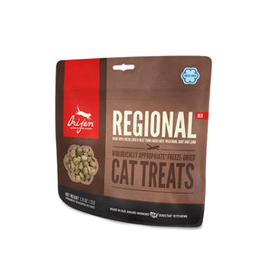 All cats are carnivores, biologically adapted to thrive on a varied diet of fresh whole meats. That’s why we loaded ORIJEN REGIONAL RED CAT TREATS with 100% ranch-raised bison, wild boar and local lamb — all delivered fresh in Whole Prey ratios so you can indulge and nourish your cat at the same time. Made without cooking or preservatives, ORIJEN’s Biologically Appropriate™ treats are freeze-dried to lock in the natural goodness and amazing flavors of our authentically fresh and regional meats into a reward your cat will love, guaranteed.