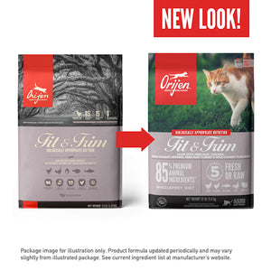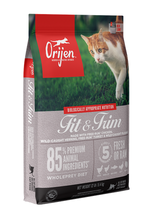 ORIJEN FIT & TRIM Cat Food is a grain-free biologically appropriate formula for overweight cats of all breeds, containing 85% premium wild-caught poultry and fish with 15% fruits,vegetables and botanicals. The first 5 ingredients are FRESH MEAT, which are low in calcium and phosphorus, helping to make the formula balanced! Using this high amount of fresh meat gives the kibble a unique shape, smell and color. And although your cat may look very different from a leopard, they share the same eating anatomy as a carnivore with a diet rich in meat, not carbohydrates or grains.