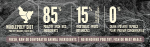 ORIJEN FIT & TRIM Dry Dog Food is a grain-free formula, containing a rich balance of premium animal ingredients (85%) with fruits, vegetables and botanicals (15%) that dogs would encounter in a wilderness setting. Free-run chicken and turkey, chicken liver, whole eggs and wild-caught fish are farmed or fished within the Kentucky region by people known and trusted by Champion Petfoods. The first 5 ingredients are FRESH MEAT, which are low in calcium and phosphorus, helping to make the formula balanced! Using this high amount of fresh meat gives the kibble a unique shape, smell and color. And although your dog may look very different from a grey wolf, they share the same eating anatomy as a carnivore with a diet rich in meat, not carbohydrates or grains.