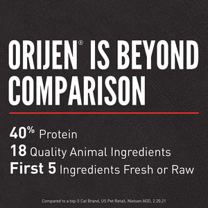 When switching diets, it's important to transition your cat or kitten as it takes time for her digestive system to adapt to the richer nutrient levels in Orijen. Over a 5-7 day period, gradually mix in Orijen, increasing the amount each day so that by day 7 you are feeding 100% Orijen.