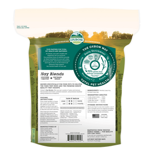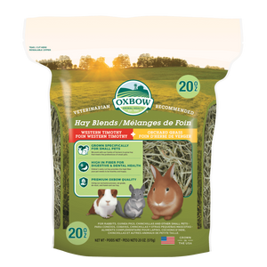 Small pets enjoy and benefit from variety in their daily diet. That’s why we’re so excited to offer our Hay Blends. Your pet rabbit, guinea pig or chinchilla is sure to love this enriching blend of premium Oxbow hays. We hand-select and blend Western Timothy and Orchard Grass to create the perfect blend of tastes and textures. Your pet should have unlimited grass hay every day.