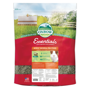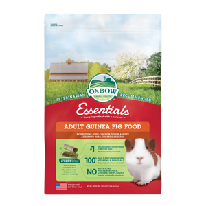Oxbow Essentials Adult Guinea Pig food is made from Timothy Grass Meal which is high in the necessary fiber that adult guinea pigs require. Lower levels of protein, calories and calcium than alfalfa-based pellets and an optimal level of Vitamin C along with the proper level of calcium-to-phosphorus ratio to help your adult guinea maintain a healthy body condition. Just what your adult guinea pig needs and craves!!