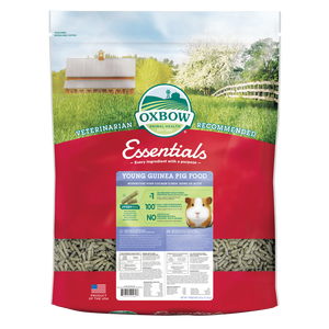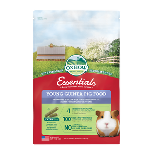 Oxbow Essentials Young Guinea Pig Food is an alfalfa-based pellet made specifically for the nutritional needs of young or active guinea pig. Alfalfa hay is used to help provide a balanced protein source containing amino acids that your guinea needs for proper growth and overall health. Young Guinea food may also be fed to pregnant or nursing guinea pigs when supplemented with grass hay. Just the right amount of fiber, calcium, protein and energy that your growing guinea pig requires!