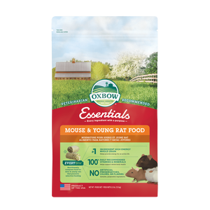 Oxbow Essentials Young Mouse and Rat Rat Food is made of a complete and balanced kibble that provides young mice and rats (and also those who are pregnant and nursing) with 100% of the daily nutrients and helps to prevent selective feeding that is common with fruit and seed-based diets. Optimal levels of fat and nutritionally balanced to prevent obesity and to improve the quality of life.