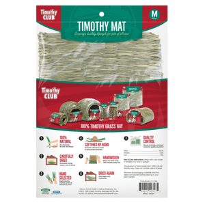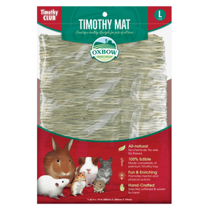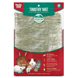 The Oxbow Timothy Mats are hand-woven 100% all-natural timothy hay accessories that are ideal for your pet herbivore to relax and rest on inside or outside of their cage. The oversized edible construction gives your small pet the fiber that they need and crave without the use of chemicals, wires or threads that they can ingest.