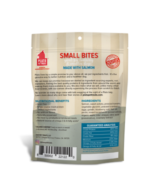 Small Bites Salmon are bite-sized, meaty morsels that are the perfect size for training or for offering multiple rewards and also supports healthy digestion. Made with real salmon as the 1st ingredient, these treats are grain free, made with limited ingredients, are naturally preserved and contain no artificial flavors, corn, wheat, or soy.