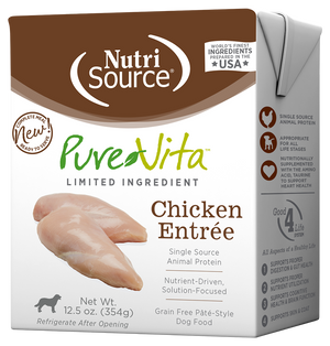 NutriSource PureVita Pate-Style dog food features meat rich, single source animal protein dense recipes. Wet dog foods are a good additional source of hydration for your pet.