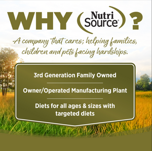 - NutriSource formulas deliver compact nutrition and include pre and pro-biotics to help support a healthy gut. Balanced Omega-3 and Omega-6 fatty acids plus Zinc to support a strong immune system, healthy skin and coat condition.
