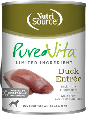 - NutriSource PureVita Pate-Style dog food features meat rich, single source animal protein dense recipes.