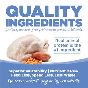 PureVita™ Grain Free Turkey & Sweet Potato Formula with Sweet Potatoes and Peas combines tasty turkey with wholesome sweet potatoes and peas as well as a select variety of fruits to deliver a healthy and delicious, easy to digest meal your dog will love. And because it is made by NutriSource® you can be sure that it is formulated and produced with care using the finest quality ingredients from our family to yours.