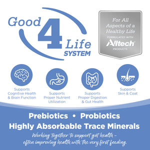Our exclusive Good 4 Life ingredients promote gut health and overall well-being for pets. Protein heavy, low carbohydrate diet for pets. Supplies necessary vitamins and minerals to support pet well-being.