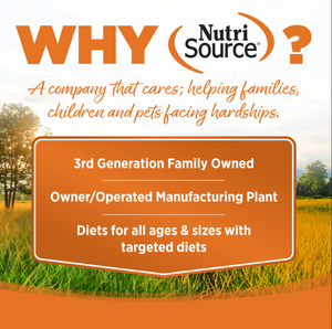 - Balanced Omega-3 and Omega-6 fatty acids along with L-Carnitine, taurine, choline chloride and DL Methionine supplementation to promote heart health make NutriSource® grain inclusive formulas stand out.