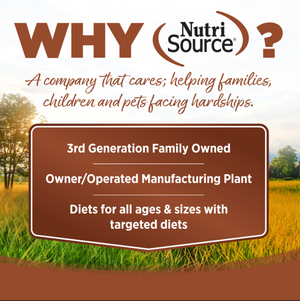 - Balanced Omega-3 and Omega-6 fatty acids along with L-Carnitine, taurine, choline chloride and DL Methionine supplementation to promote heart health make NutriSource® grain inclusive formulas stand out.