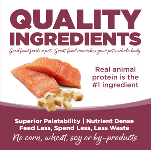 PureVita™ Brand Salmon and Potato Formula combines tasty salmon with wholesome potatoes and a select variety of nutritious fruits and vegetables to deliver a healthy and delicious, easy to digest meal your pet will love. And because it's made by NutriSource® you can be sure that everything used to make PureVita™ are the finest quality, purest ingredients available.