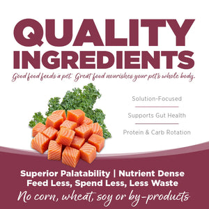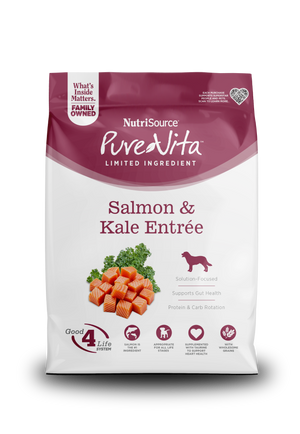 PureVita™ Salmon and Kale Entrée combines tasty salmon with wholesome potatoes and a select variety of nutritious fruits and vegetables to deliver a healthy and delicious, easy to digest meal your pet will love. PureVita™ entrées feature single source animal or fish proteins in a limited ingredient diet.