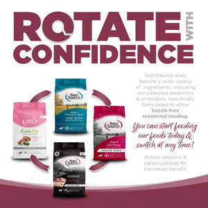 Switching Your Dog to NutriSource®: For easiest adjustment, mix increasing amounts of NutriSource® PureVita™ Dog Food with decreasing amounts of your dog's current food over a 5-day period, until you are feeding only NutriSource®. Adjust as needed for age and activity level.