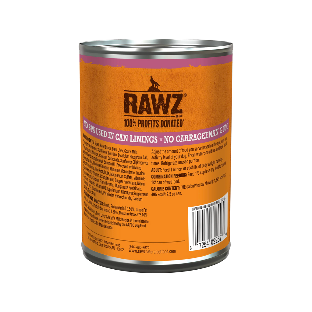 RAWZ 96% Beef, Beef Liver & Goat's Milk Pate Canned Food for Dogs