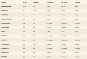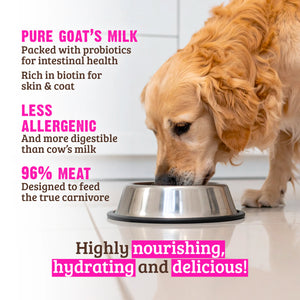 Chicken, Chicken Broth, Vegetable Broth, Chicken Liver, Goat's Milk, Fenugreek Seed, Salt, Potassium Chloride, Thiamine Mononitrate, Choline Chloride, Tricalcium Phosphate, Taurine, Salmon Oil (preserved with Mixed Tocopherols), Zinc Proteinate, Iron Proteinate, Magnesium Sulfate, Vitamin E Supplement, Copper Proteinate, Manganese Proteinate, Vitamin A Supplement, Niacin Supplement, Sodium Selenite, Calcium Pantothenate, Vitamin D3 Supplement, Riboflavin Supplement, Vitamin B12 Supplement, Pyridoxine Hydrochloride, Calcium Iodate, Folic Acid.