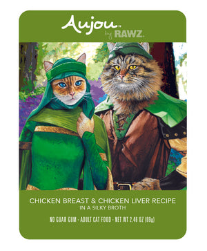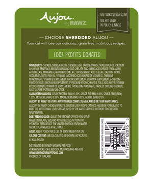 RAWZ Aujou Adult Cat Shredded Chicken Breast & Chicken Liver in a silky broth. Minimally processed, without the use of artificial binders or gums.