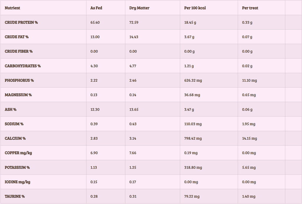 Feed as a snack or reward. This product is intended for intermittent or supplemental feeding only. We recommend treats to not exceed 10% of your pet’s total daily consumption.