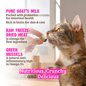RAWZ Freeze Dried Wild Caught Salmon, Goat's Milk & Green Mussels Crunchy Cat Treats