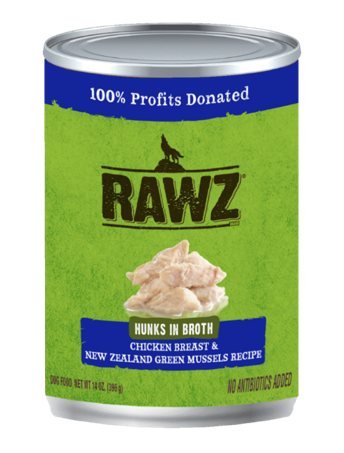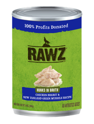 RAWZ Hunks in Broth Chicken Breast & New Zealand Green Mussel Recipe Canned Dog Food