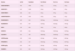 ADULT: Feed 1 ounce for each lb. of body weight per day.