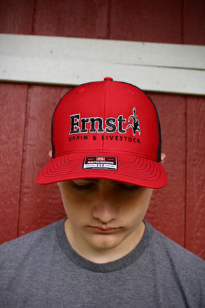 When sunglasses are missing in action, a hat can keep the sun out of your eyes just as nicely! Our red and black Ernst Grain & Livestock hat is the perfect alternative! The mesh material of the hat keeps air flowing around your head, so no unwanted heat or sweat gets trapped under the hat. By donning this snapback you are supporting our 7th generation family farm. Ernst Grain & Livestock is also the proud producer of Homestead Harvest. A brand of Non-GMO feeds, packed with omega 3’s, whole grains, nutrients, and vitamins. In addition, we strive to protect our local ecosystem by employing no-till cropping, cover crops, riparian buffer zones, and many more management practices. By wearing this hat you’re supporting a local family-owned business in the great state of Maryland!