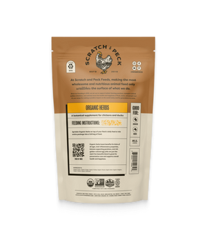 Sprinkle Organic Herbs on top of your flock’s daily feed or mix the entire package into a full bag of feed.