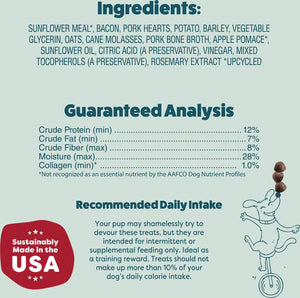 - Contains real bacon, pork hearts and pork bone broth for a single-animal protein treat.