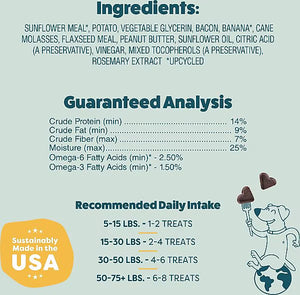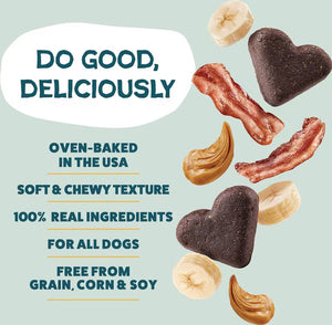 Serve your sidekick a new kind of snack with Shameless Pets Soft Baked Bananas for Bacon Grain-Free Dog Treats. These all-natural treats for dogs are formulated with sweet bananas, real bacon and a hint of peanut butter to help support skin and coat health. They are crafted using upcycled ingredients that do not contain any grain, corn or soy. These delicious dog treats for skin and coat health are paw-fect for limited-ingredient diets and can be served to all breeds of dogs in any stage of life.